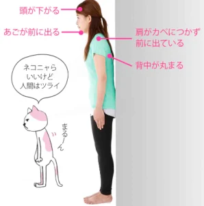 ですが、普段の生活は前屈みの姿勢になることが多く、ずっと身体を伸ばしたまま生活をすることは実は難しいのです。